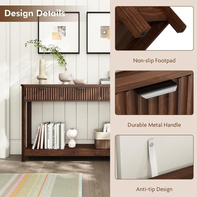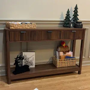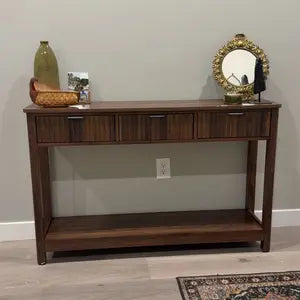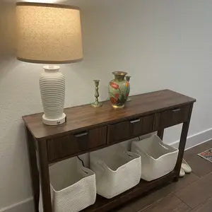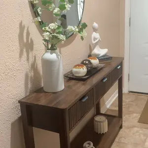 Drawers and a bottom shelf keep keys, mail, and decor organized, helping you reduce clutter and stay tidy every day.