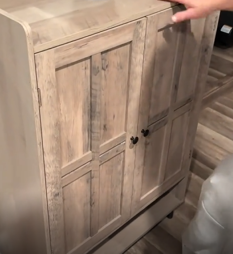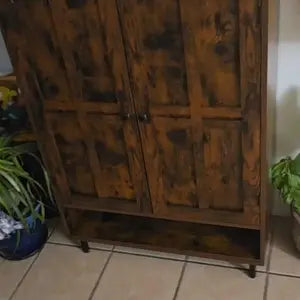 Built with a solid wood frame and metal legs with adjustable feet, the cabinet is sturdy and anti-tip, ensuring safety in your home.