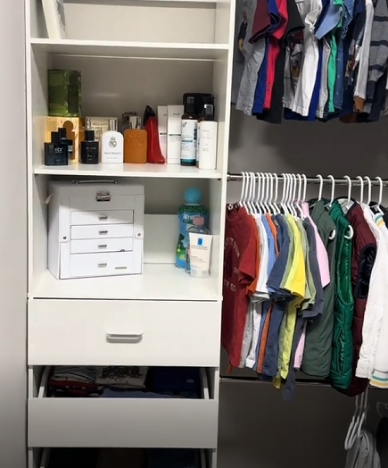 The system supports up to 1000 lbs, keeping clothes, shoes, and accessories safe and organized without wobbling.